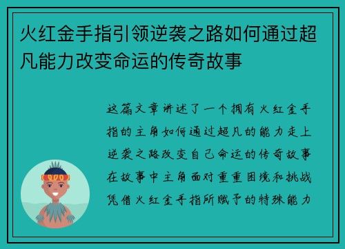 火红金手指引领逆袭之路如何通过超凡能力改变命运的传奇故事