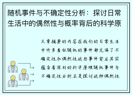 随机事件与不确定性分析:探讨日常生活中的偶然性与概率背后的科学原理