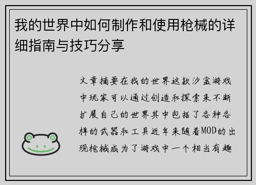 我的世界中如何制作和使用枪械的详细指南与技巧分享